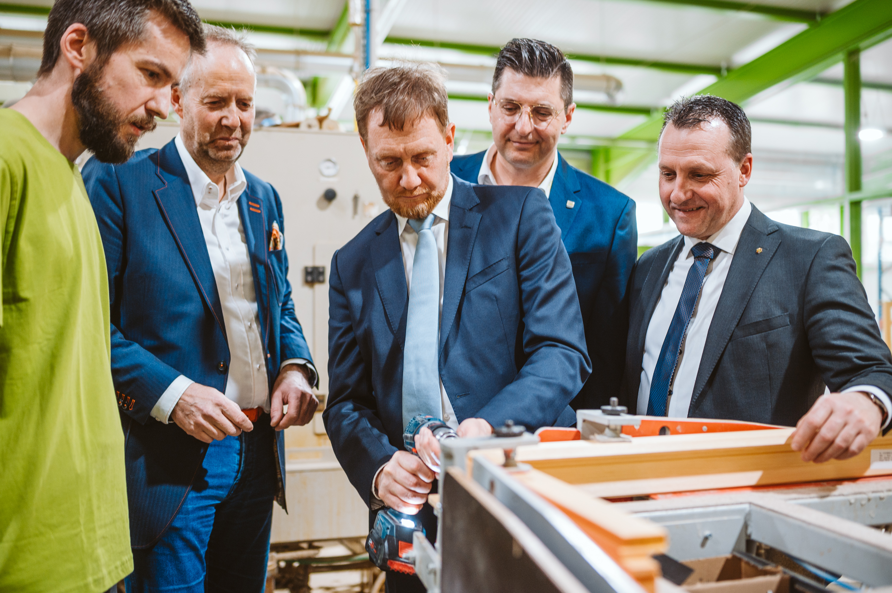 Am 11. März 2026 durfte die Fenster- & Türenbau Grünbeck GmbH hochrangige politische Gäste in Plauen begrüßen. Sachsens Ministerpräsident Michael Kretschmer besuchte gemeinsam mit Landrat Thomas Hennig und dem vogtländischen Landtagsabgeordneten Jörg Schmidt unseren traditionsreichen Familienbetrieb. Der Austausch bot die Gelegenheit, die Bedeutung mittelständischer Unternehmen für den Wirtschaftsstandort Sachsen zu unterstreichen – und zugleich die Innovationskraft unseres Hauses sichtbar zu machen.